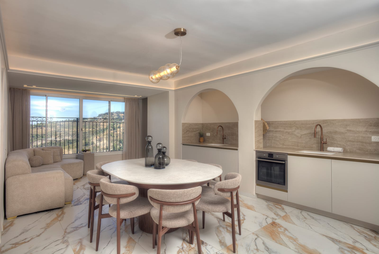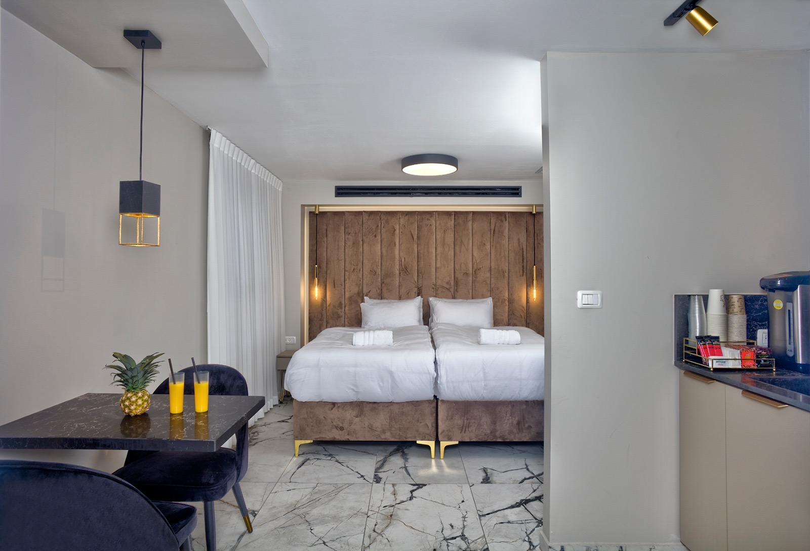 חללי אירוח מוקפדים עם חומרים איכותיים ואווירה יוקרתית.